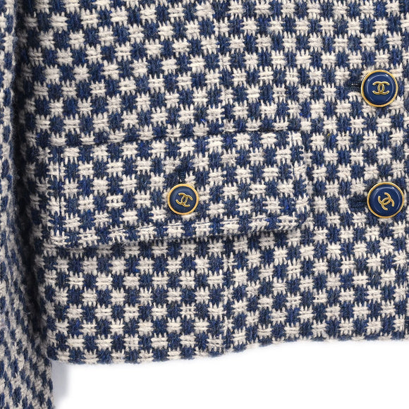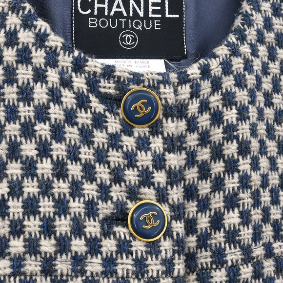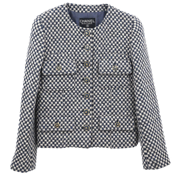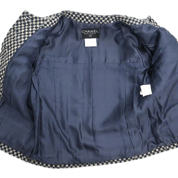 Chanel 1995 Single Breasted Collarless Jacket Navy #38