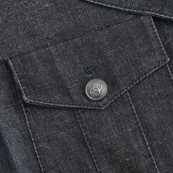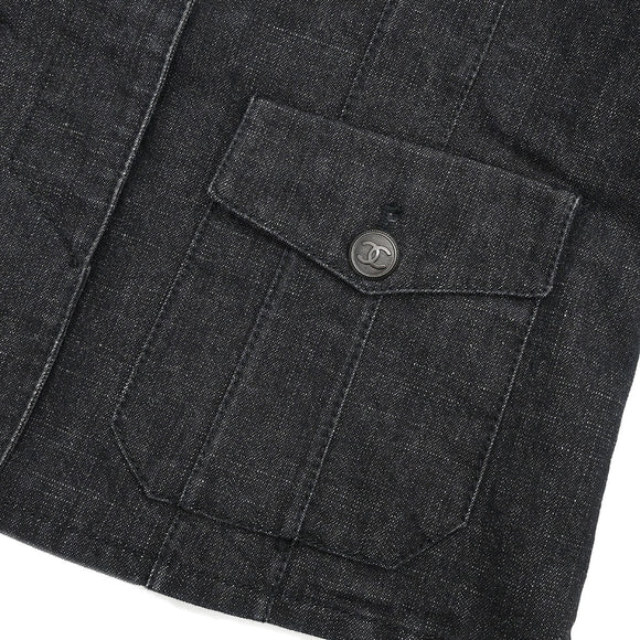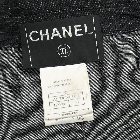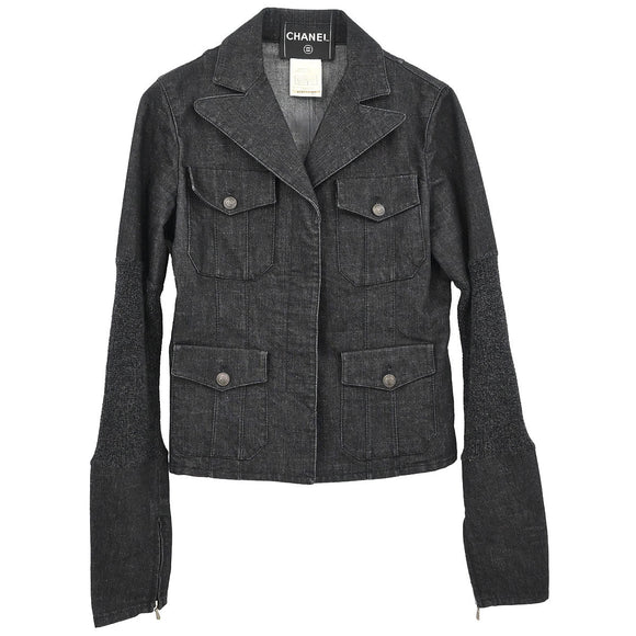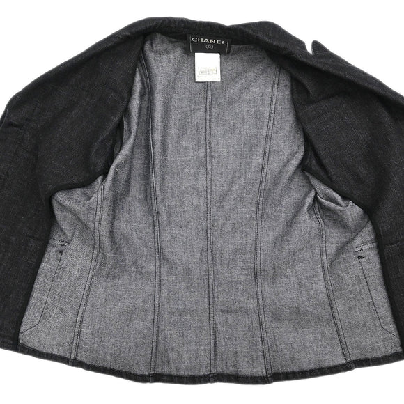 Chanel 2003 Single Breasted Denim Jacket Black #36