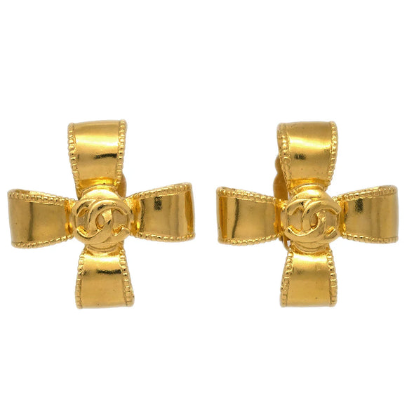 Chanel 1997 Ribbon Cross Earrings Clip-On