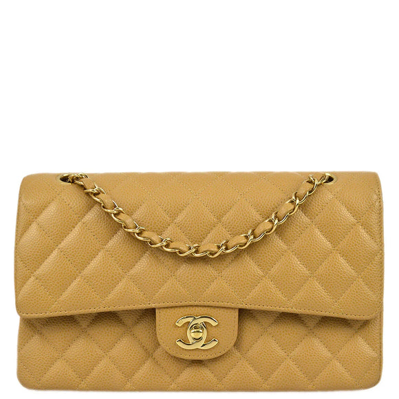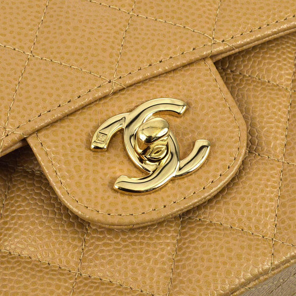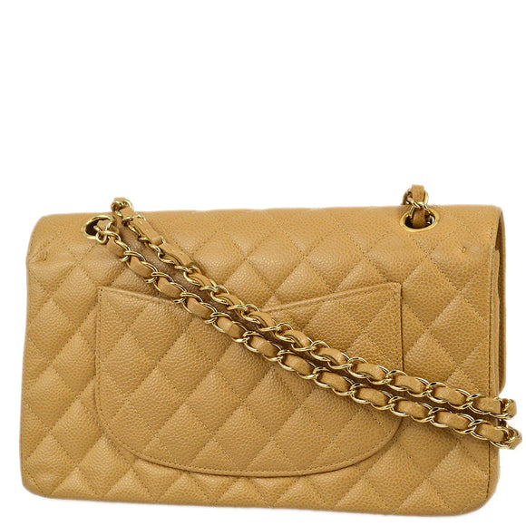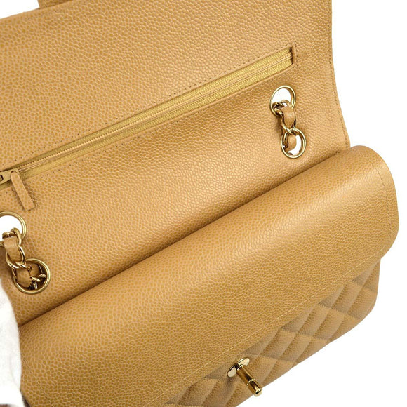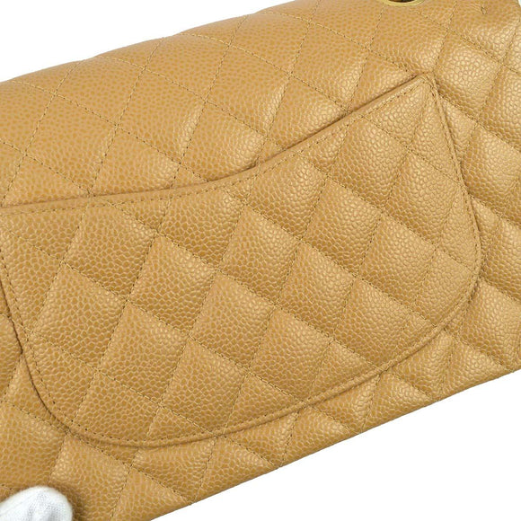 Chanel 2003-2004 Beige Caviar Medium Classic Double Flap Bag