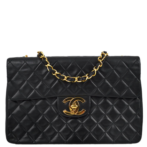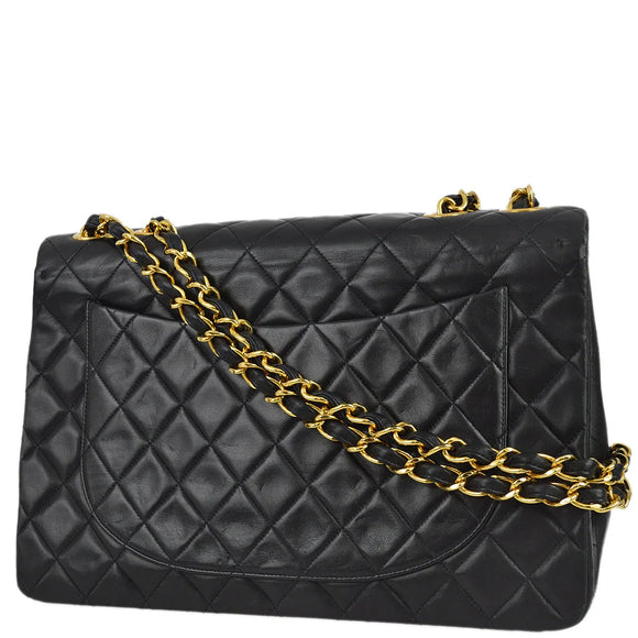 Chanel 1994-1996 Black Lambskin Maxi Classic Flap Bag