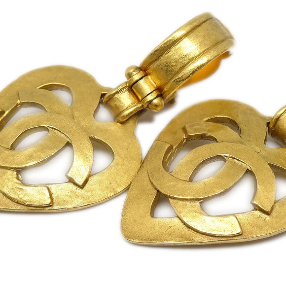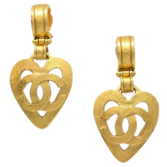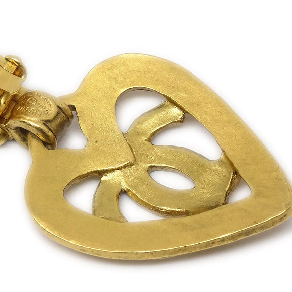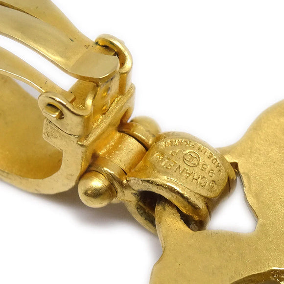 Chanel Dangle Heart Earrings Gold Clip-On 95P