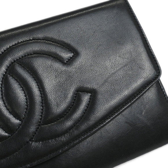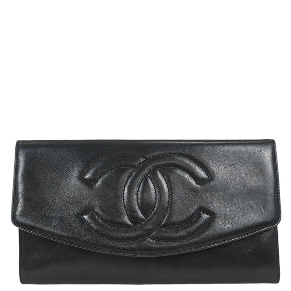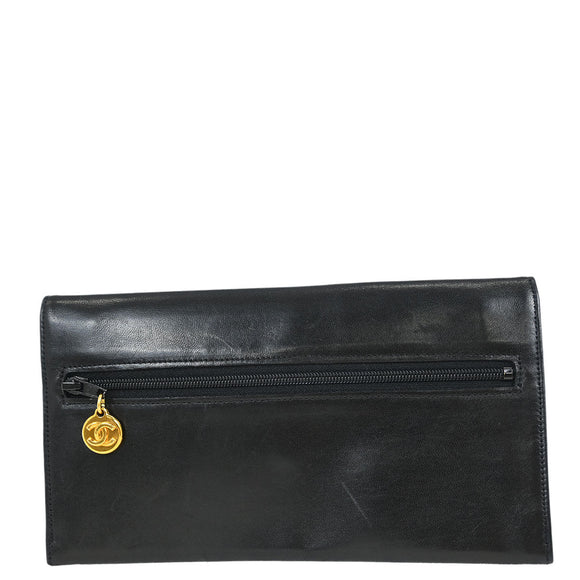 Chanel 1994-1996 Black Lambskin Long Wallet Purse