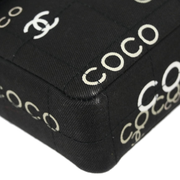 Chanel 2000-2002 Black Canvas COCO East West Choco Bar Shoulder Bag