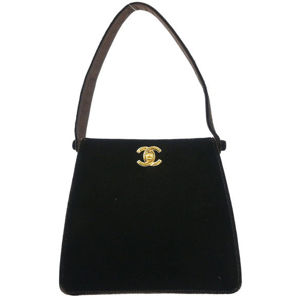 Chanel 1997-1999 Dark Brown Velvet Double Sided Turnlock Handbag