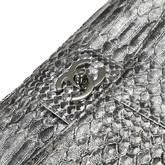 Chanel * 2006-2008 Silver Python Medium Single Flap Shoulder Bag