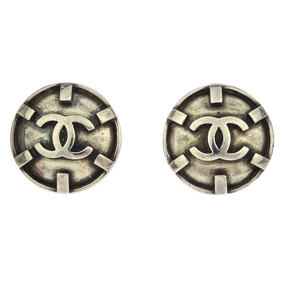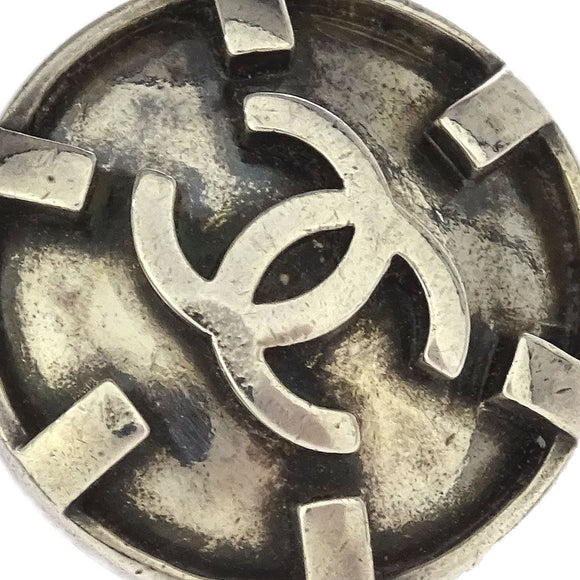 Chanel Button Earrings Clip-On Silver 96P