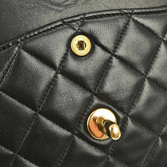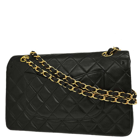 Chanel 1997-1999 Black Lambskin Medium Classic Double Flap Shoulder Bag