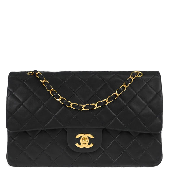 Chanel 1997-1999 Black Lambskin Medium Classic Double Flap Shoulder Bag