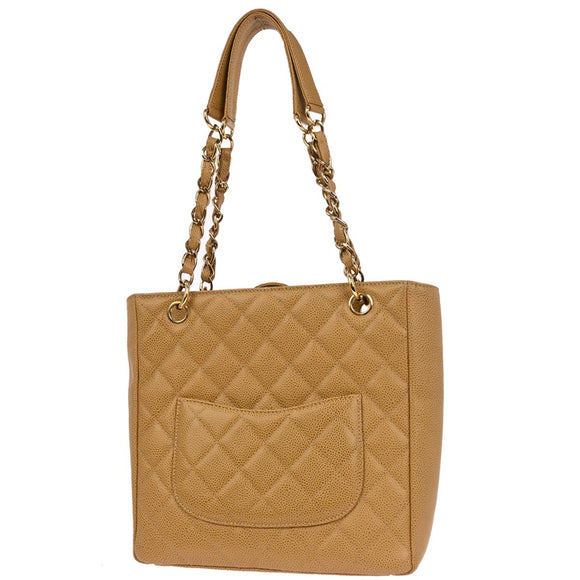 Chanel 2003-2004 Beige Caviar Petite Shopping Tote PST Chain Handbag