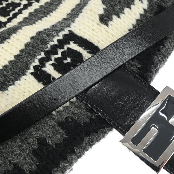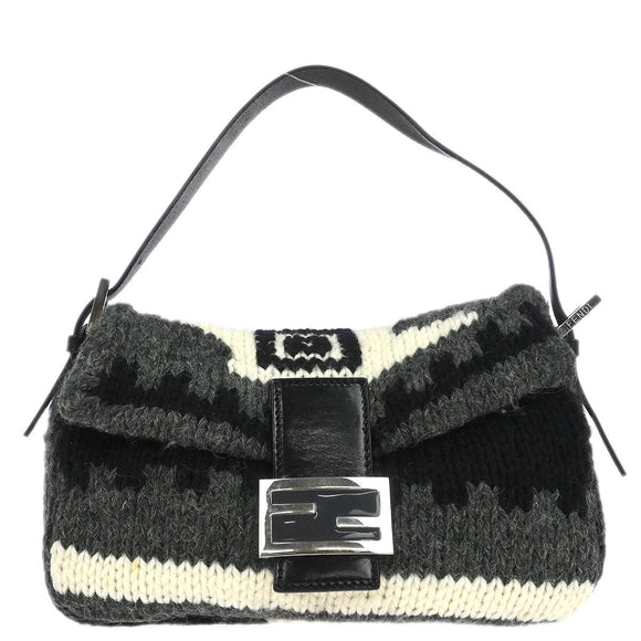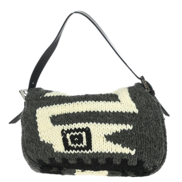 Fendi Gray Wool Baguette Handbag