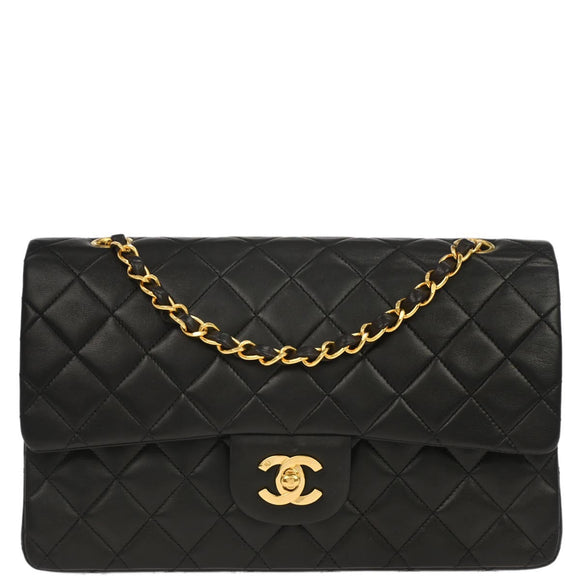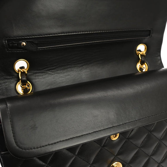 Chanel 1991-1994 Black Lambskin Medium Classic Double Flap Shoulder Bag