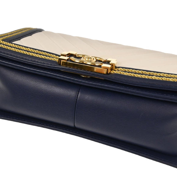 Boy Chanel 2018-2019 White Lambskin Chevron Medium Shoulder Bag