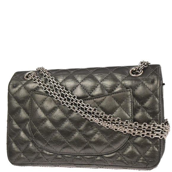 Chanel 2017-2018 Silver Calfskin 2.55 Medium Classic Double Flap Shoulder Bag