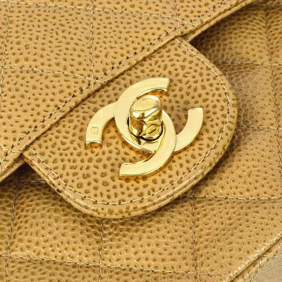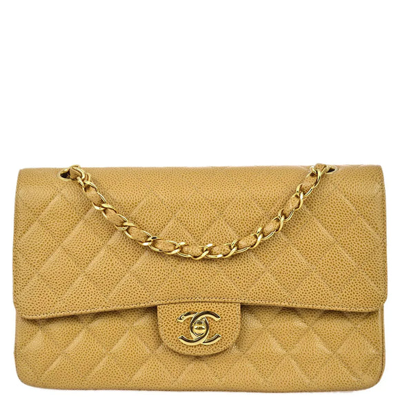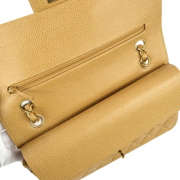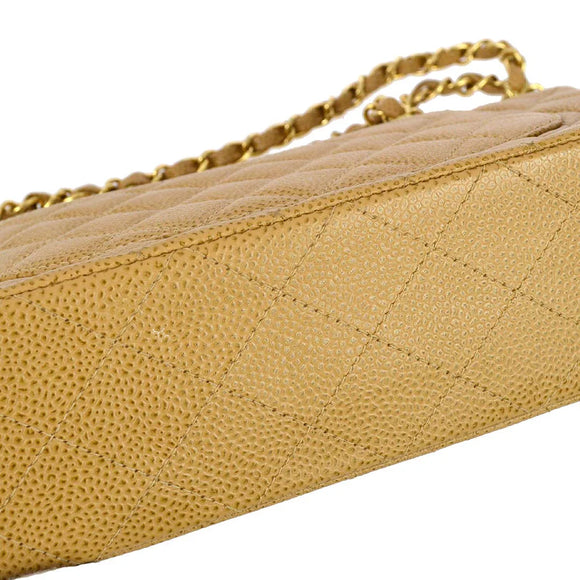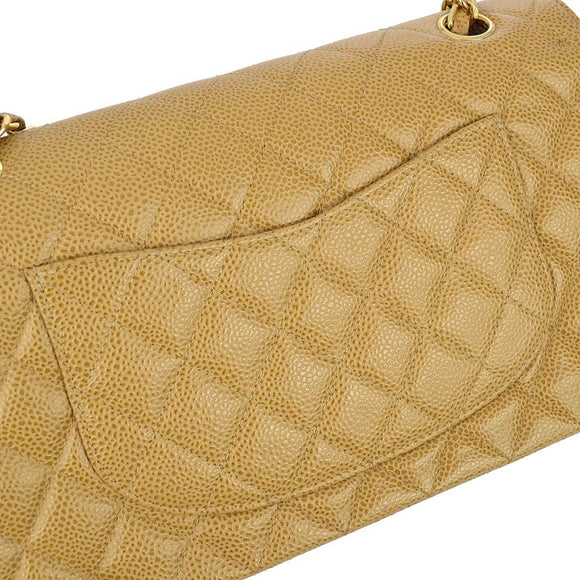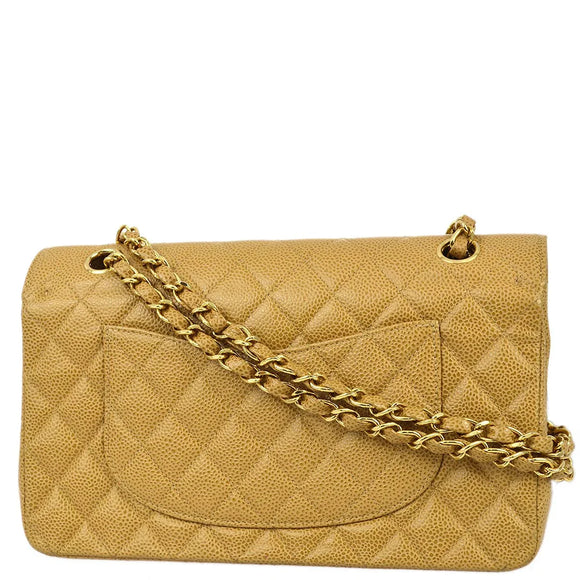 Chanel 2001-2003 Beige Caviar Medium Classic Double Flap Bag