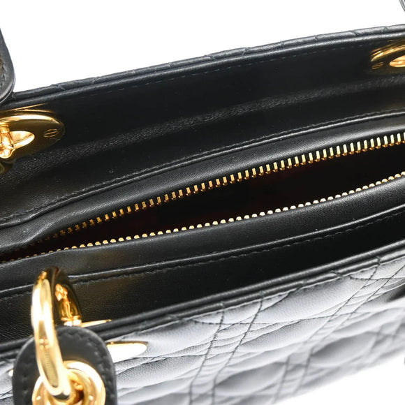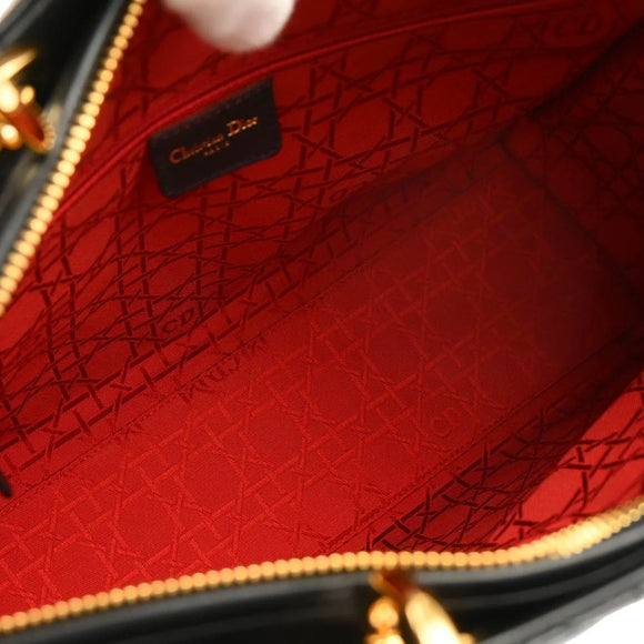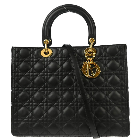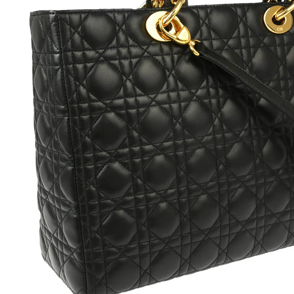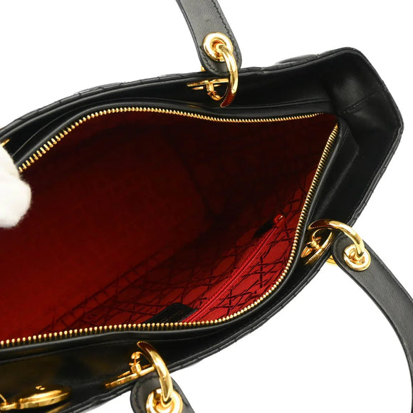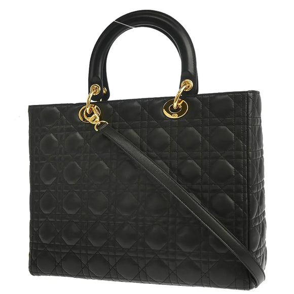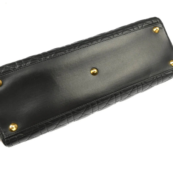 Christian Dior 2000 Black Lambskin Large Lady Dior Cannage 2way Shoulder Handbag