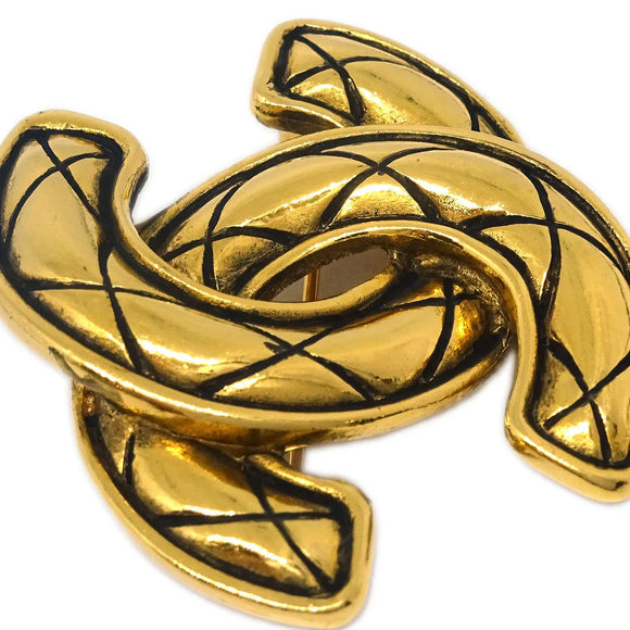 Chanel Quilted CC Brooch Pin Gold 1153