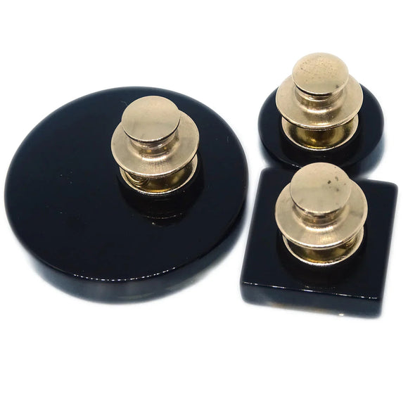 Chanel 3set Brooch Pin Rhinestone Black Gold 07P