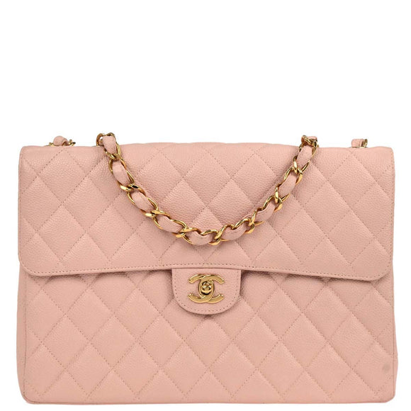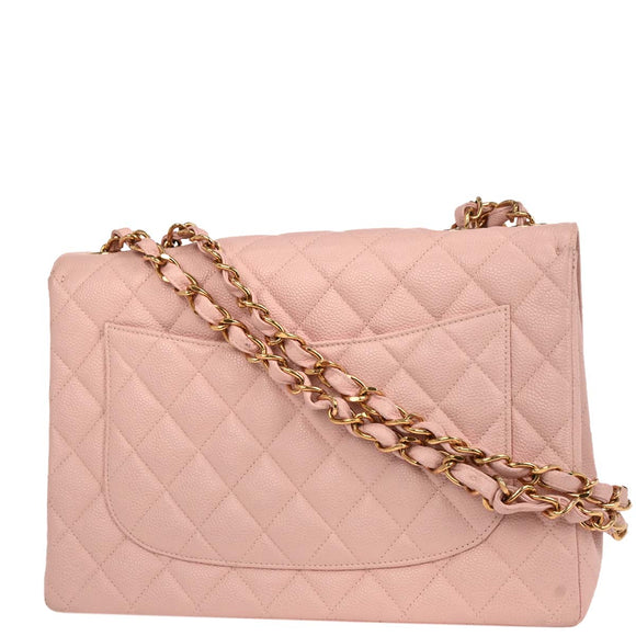 Chanel 2001-2003 Pink Caviar Jumbo Classic Flap Shoulder Bag
