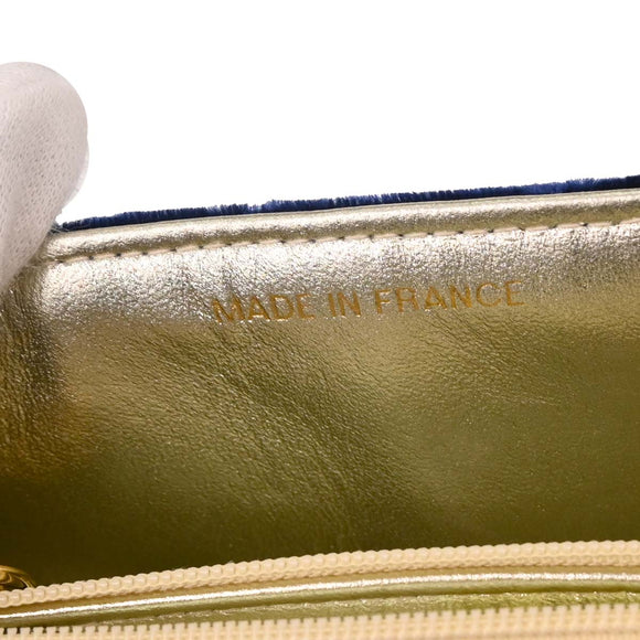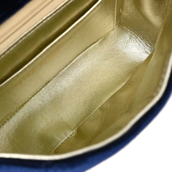 Chanel 1991-1994 Navy Velvet Rhinestone Shoulder Bag