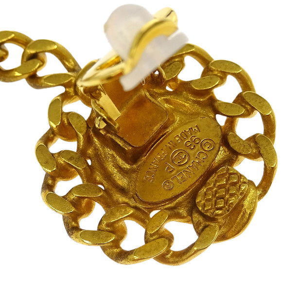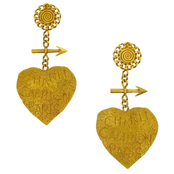 Chanel Dangle Heart Arrow Earrings Gold Clip-On 93P