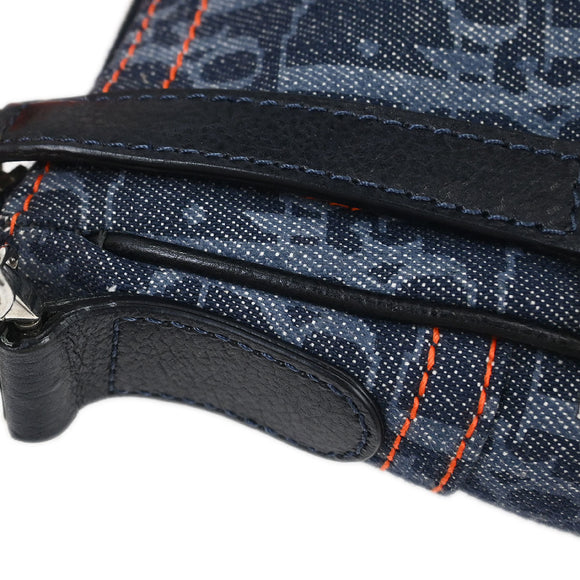 Christian Dior 2005 Navy Denim Trotter Flight Saddle Shoulder Bag