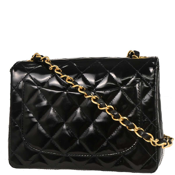 Chanel 1989-1991 Black Patent Mini Classic Square Flap Shoulder Bag 17