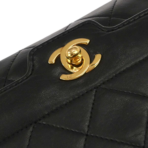 Chanel 1989-1991 Black Lambskin Single Flap Shoulder Bag