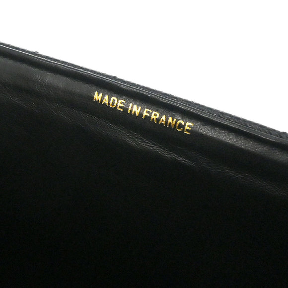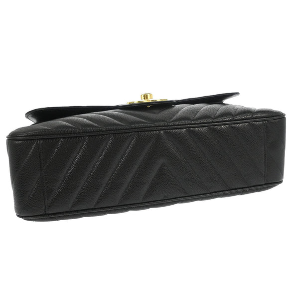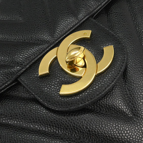 Chanel 1991-1994 Black Caviar Skin Chevron Maxi Classic Flap Shoulder Bag
