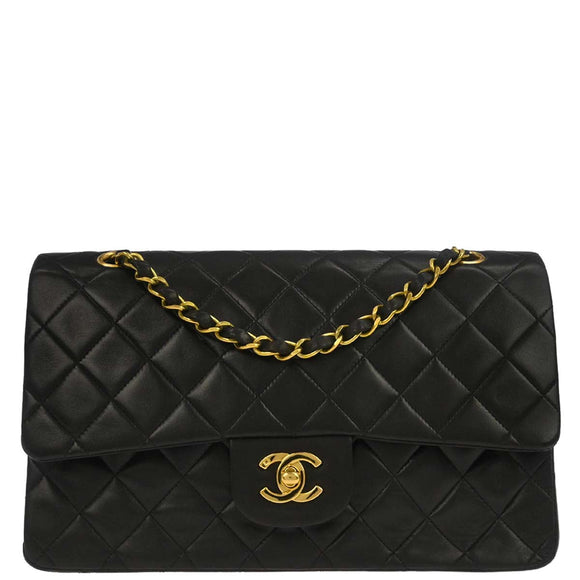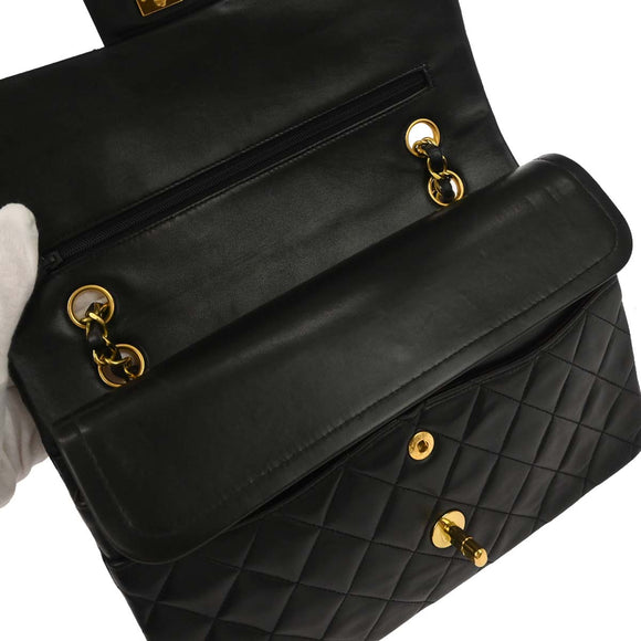 Chanel 1994-1996 Black Lambskin Medium Classic Double Flap Shoulder Bag
