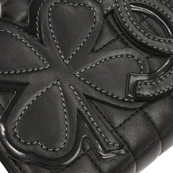 Chanel 2005-2006 Black Lambskin Choco Bar Camellia No.5 CC Clover Handbag
