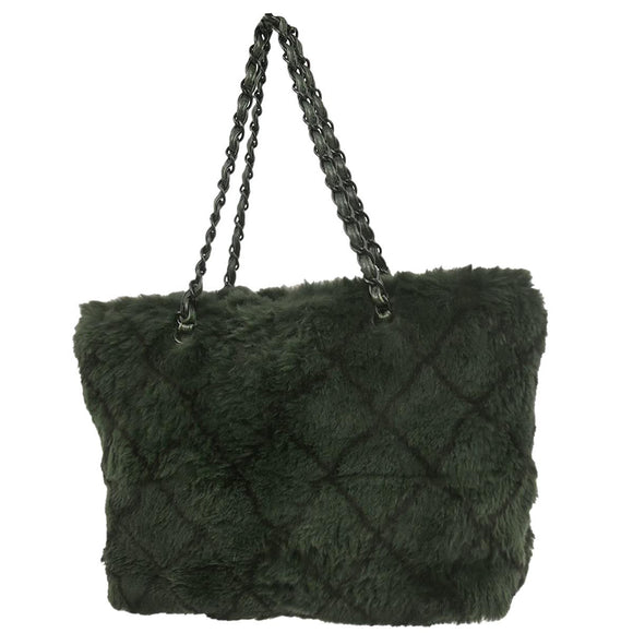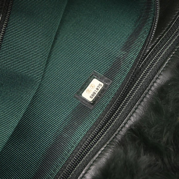 Chanel 2000-2002 Dark Green Lapin Fur Tote Shoulder Bag