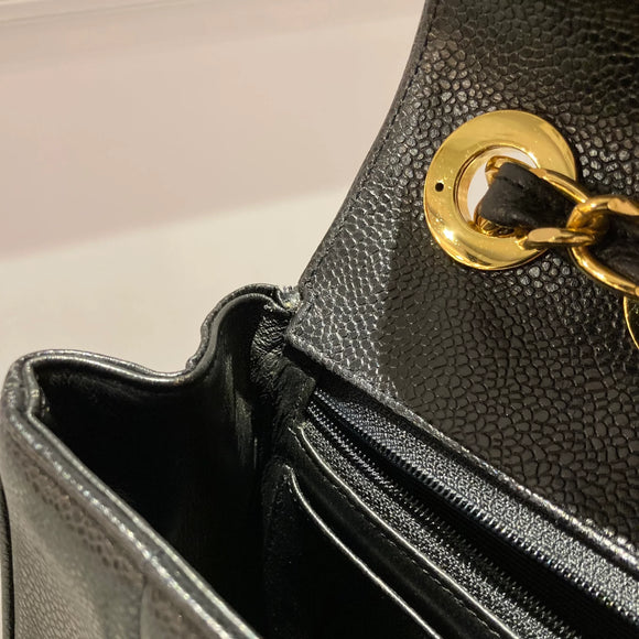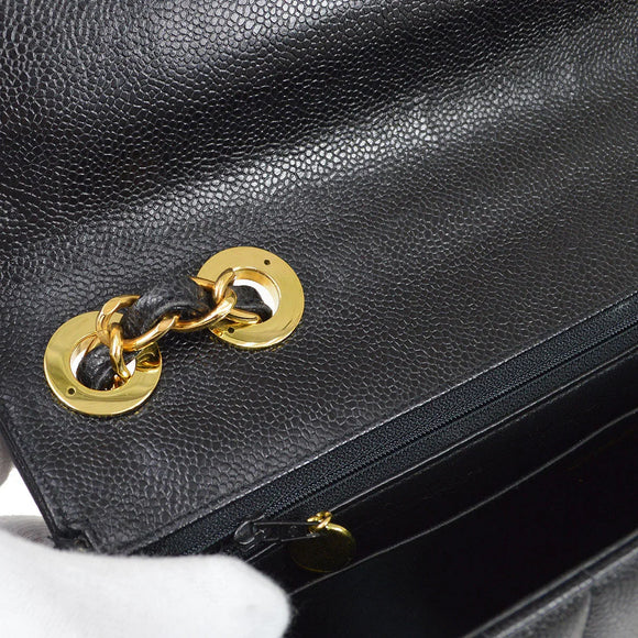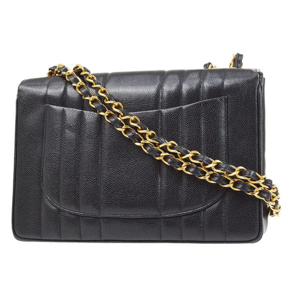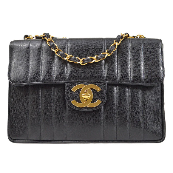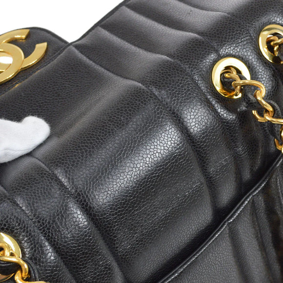 CHANEL 1991-1994 Black Caviar Vertical Classic Flap Jumbo