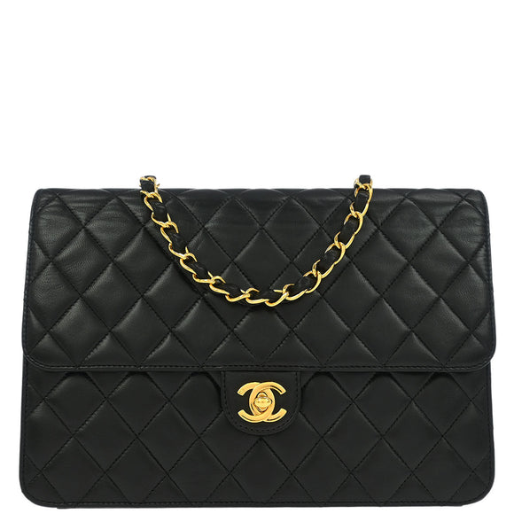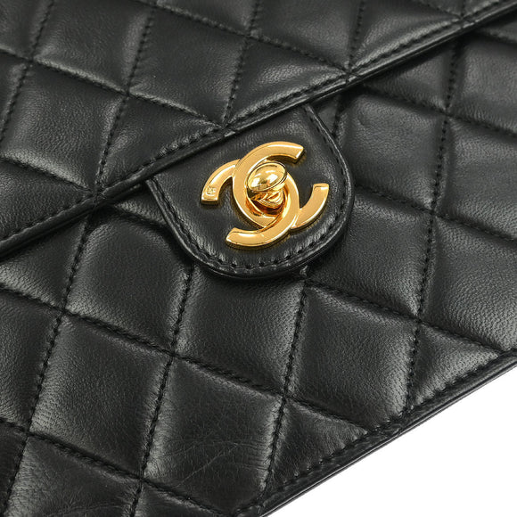 Chanel Black Lambskin Turnlock Medium Half Flap Shoulder Bag