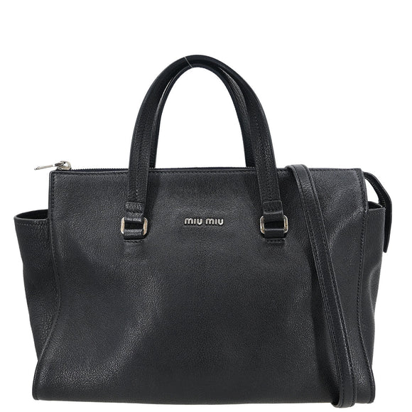 Miu Miu Black Leather Tote 2way Shoulder Handbag