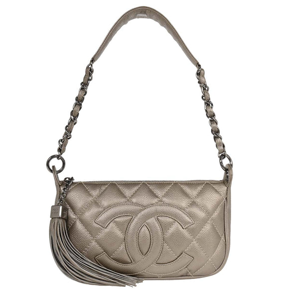 Chanel 2004-2005 Silver Caviar Fringe Handbag