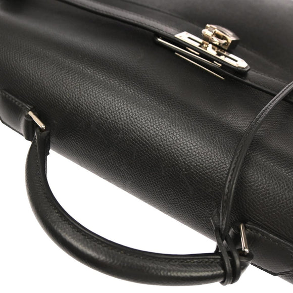 Hermes Black Epsom Kelly Depeche 38 Business Handbag