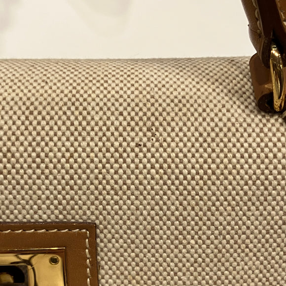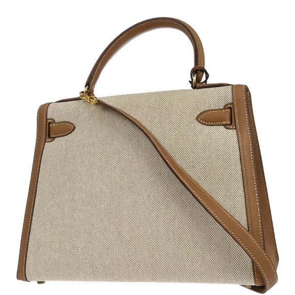 Hermes Beige Natural Toile H Vache Kelly 28 Sellier 2way Shoulder Handbag