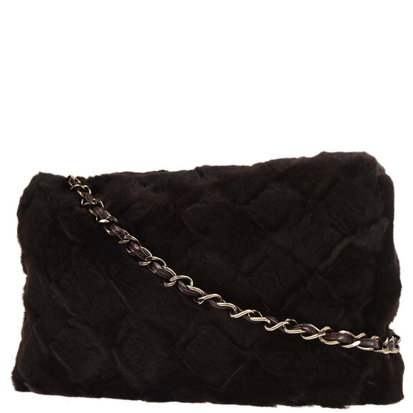 Chanel 2000-2002 Brown Rabbit Fur Jumbo Straight Flap Shoulder Bag