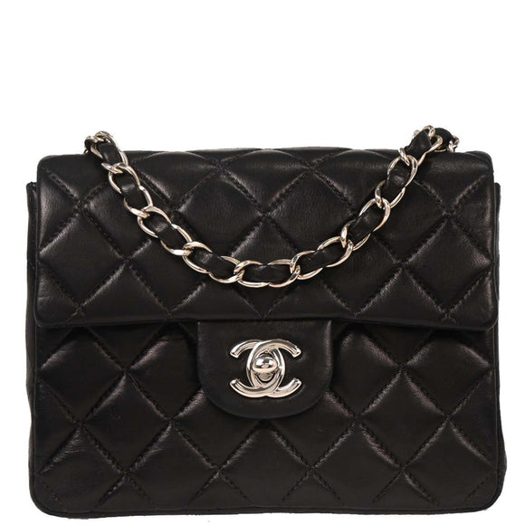 Chanel 2000-2001 Black Lambskin Mini Classic Square Flap Shoulder Bag