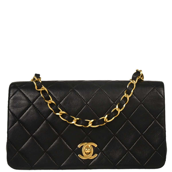 Chanel Black Lambskin Turnlock Mini Full Flap Shoulder Bag