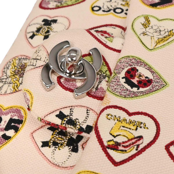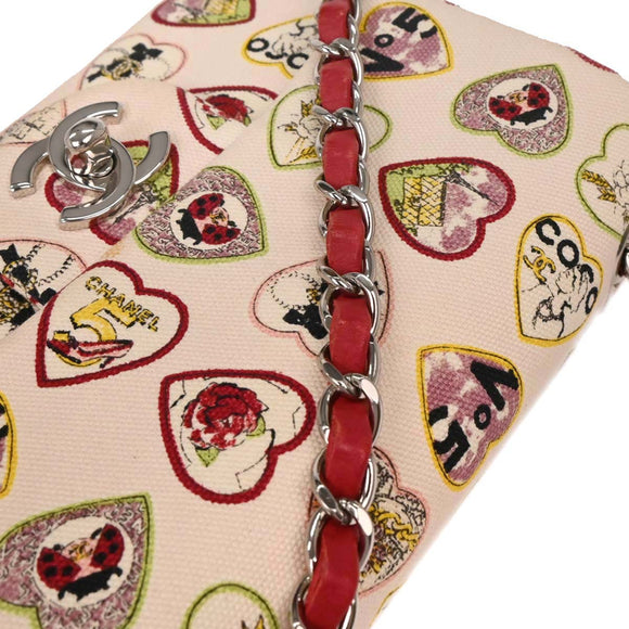 Chanel 2005-2006 Pink Canvas Valentine Mini Classic Square Flap Shoulder Bag