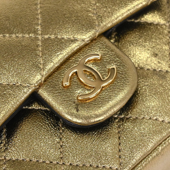 Chanel Metallic Gold Lambskin Classic Flap Micro Bag Pouch