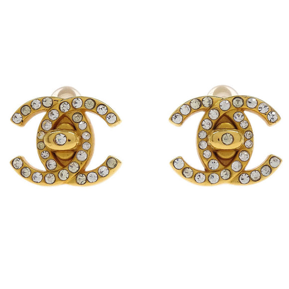 Chanel CC Turnlock Earrings Clip-On Gold Small Rhinestone 96A