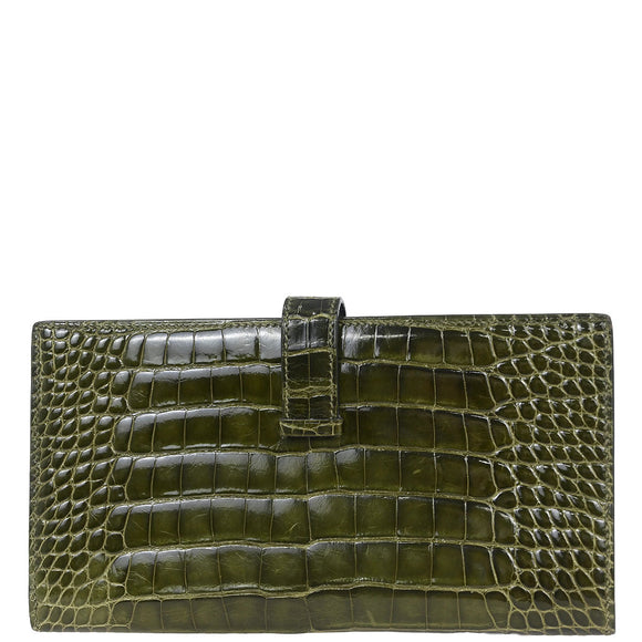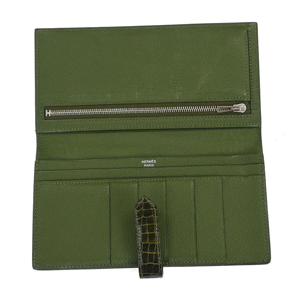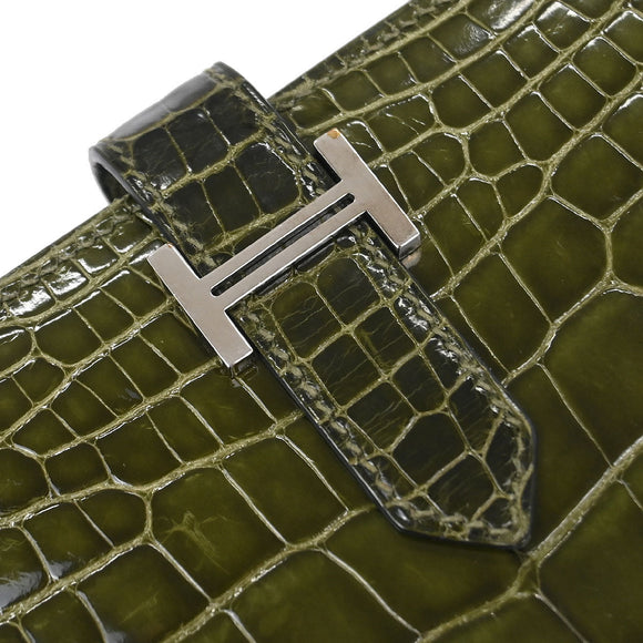 Hermes * Olive Green Alligator Bearn Soufflet Wallet