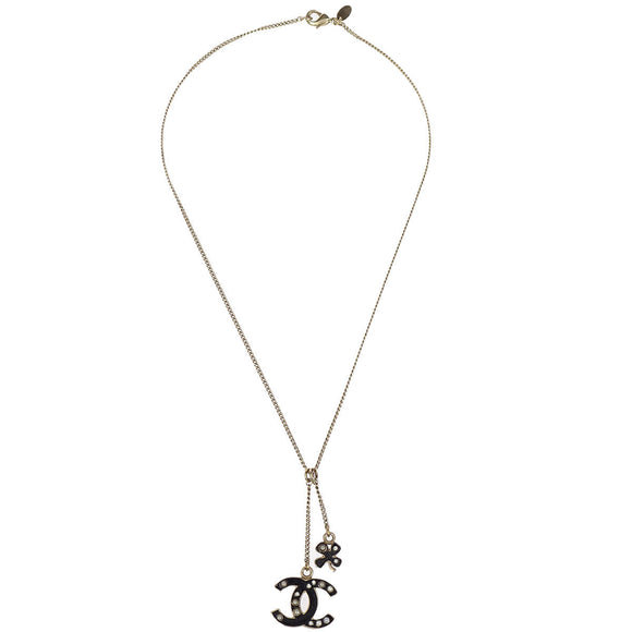 Chanel Charm CC Gold Chain Necklace Rhinestone Costume Pearl 07A
