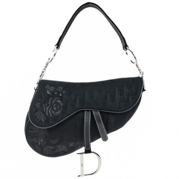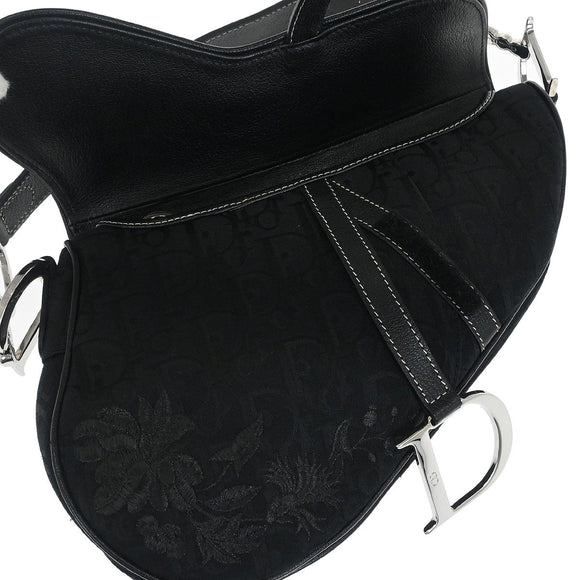 Christian Dior 2005 Black Embroidered Trotter Saddle Handbag