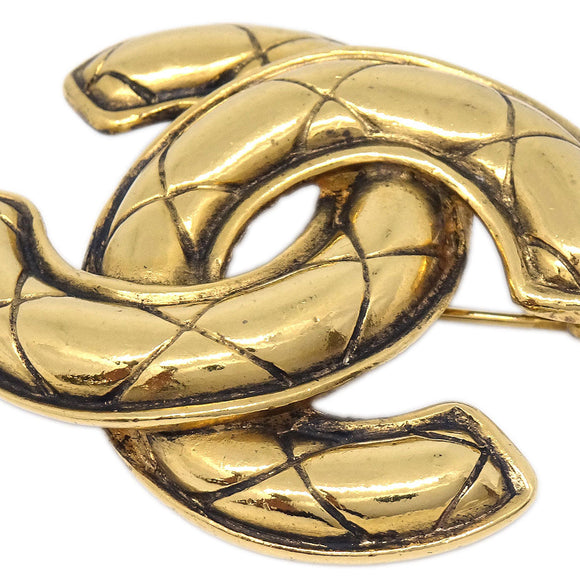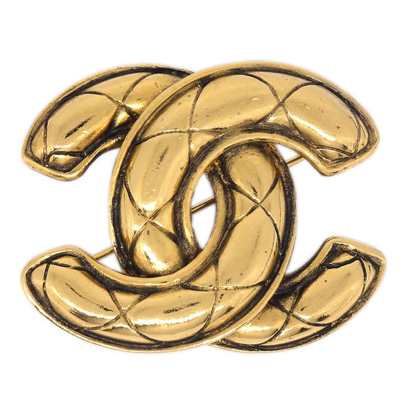 Chanel Quilted CC Brooch Pin Medium Gold 1142