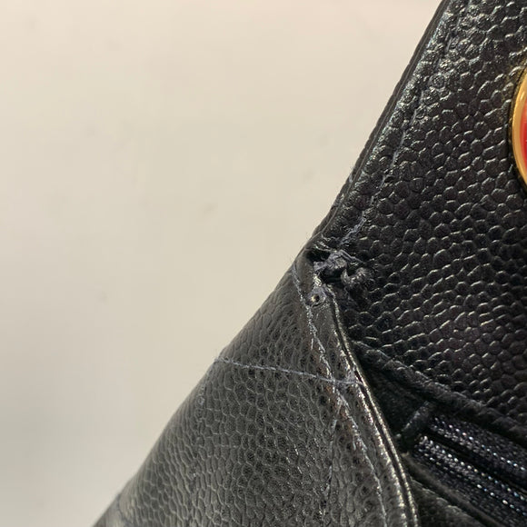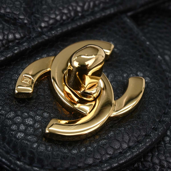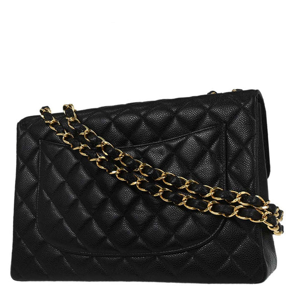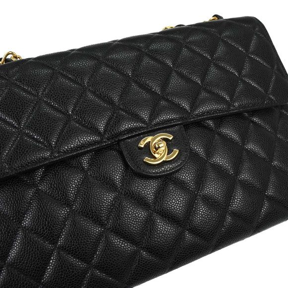 Chanel 1997-1999 Black Caviar Skin Jumbo Classic Flap Shoulder Bag