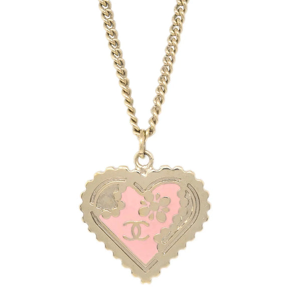 Chanel Heart Chain Pendant Necklace Gold 05P